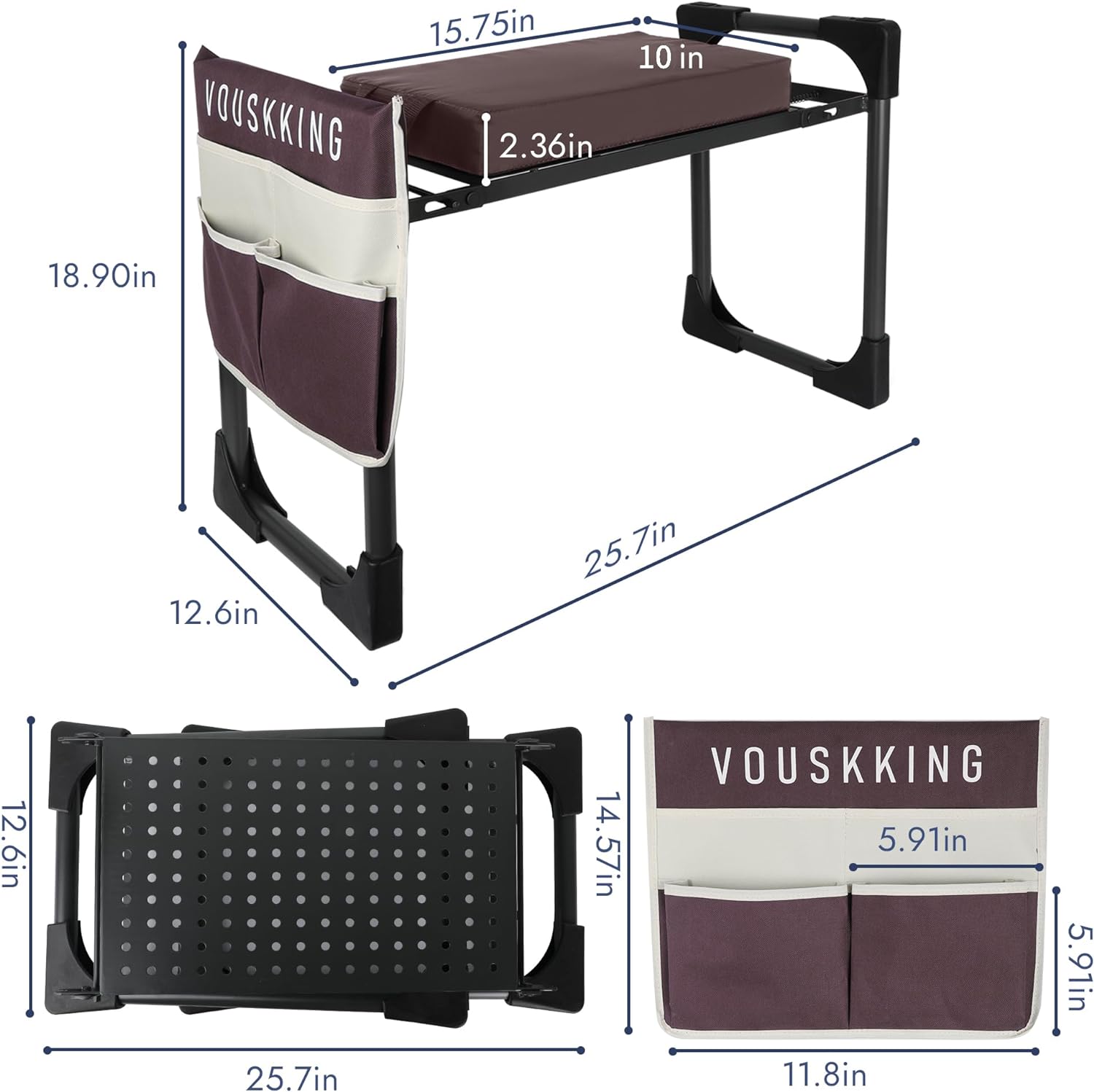 【2 in 1 Functional Kneeling Stool】 VOUSKKING 2 in 1 garden kneeling stool is a good helper for your gardening work! When you use it as a garden kneeler to protect your knees , when use it as a workseat to relieve you tired. Truly make one product to satisfy your two requirements.
