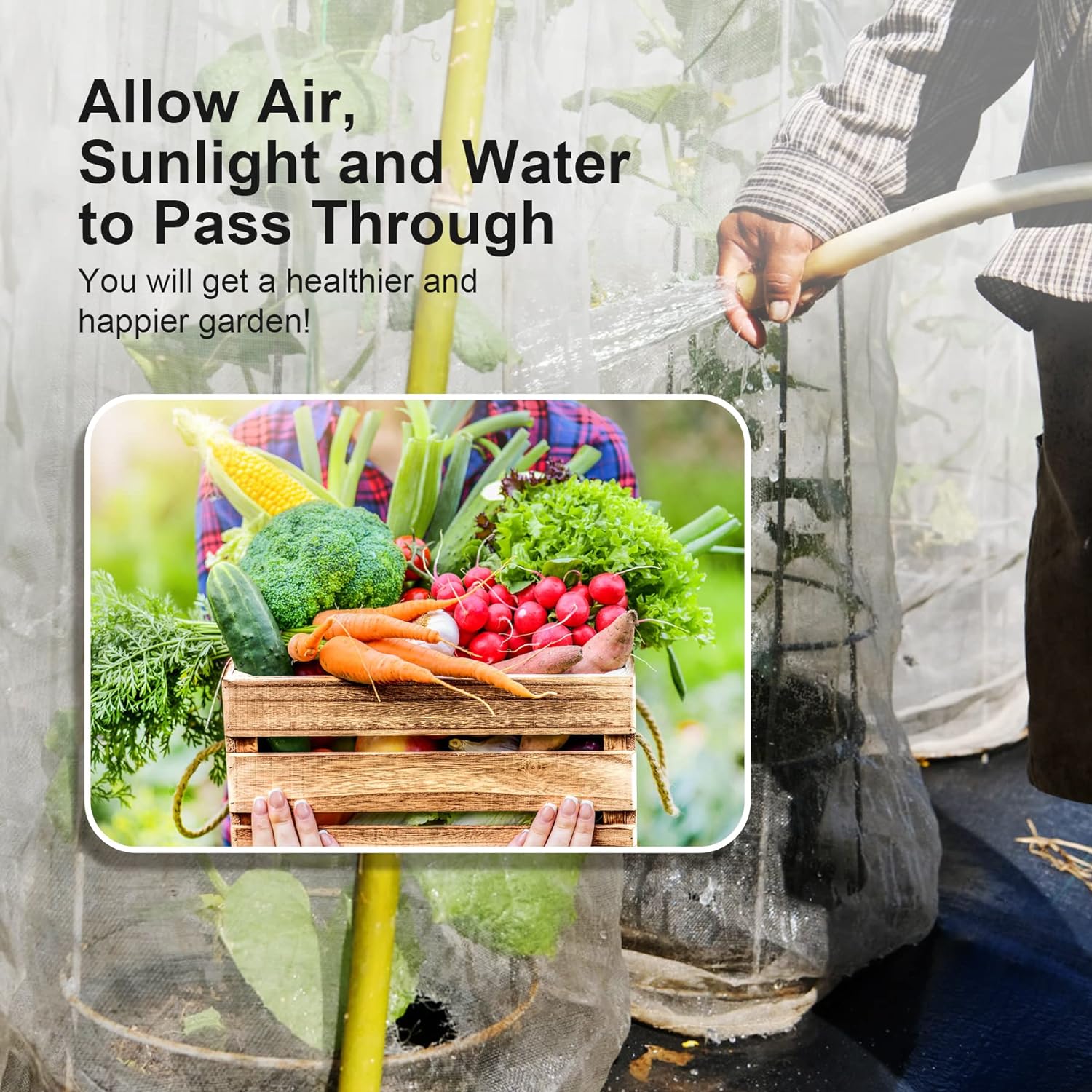 🥬CONVENIENT to USE: Air, water and light enter through the net easily, you can put it on any garden hoops, beds or fruits or vegetable cages, no need to remove it when watering