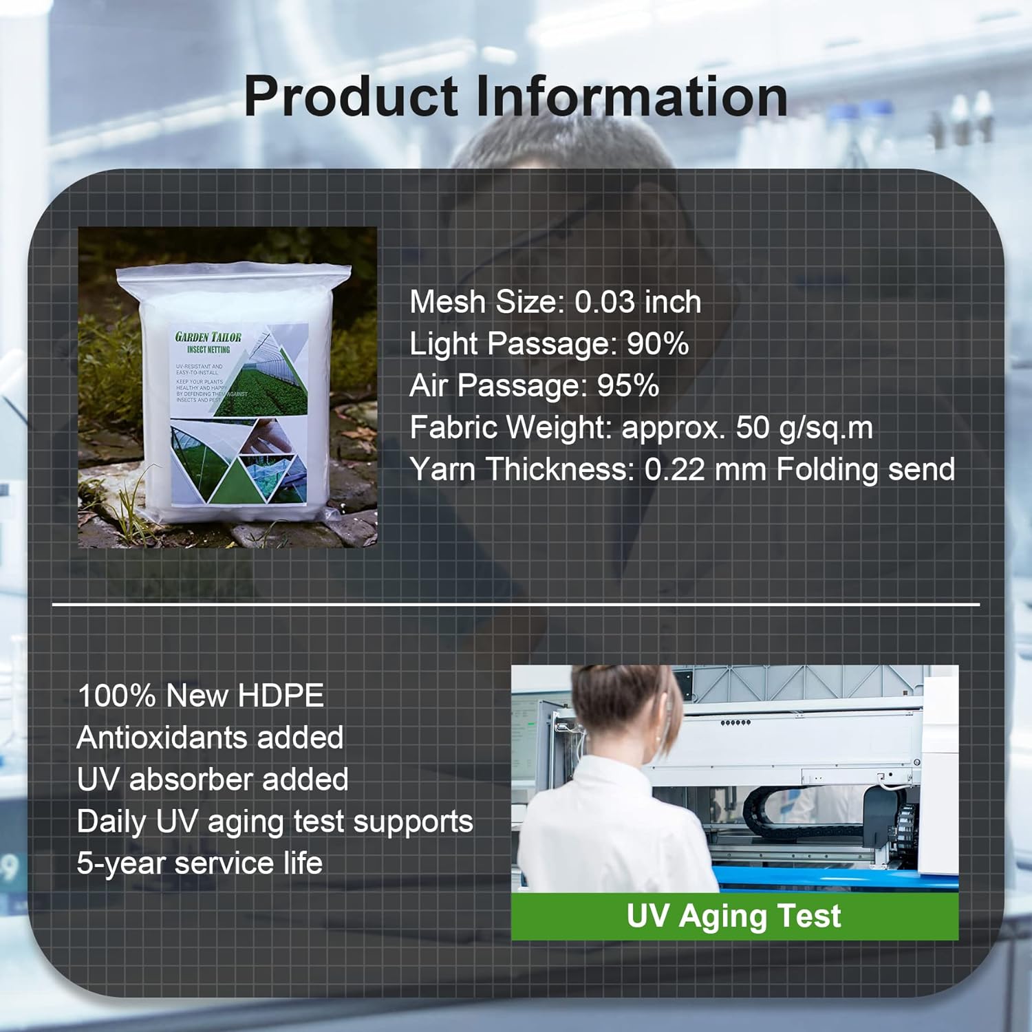 🥬FEATURES: 100% NEW HDPE fine mesh net, UV stabilized, 40 Mesh, 3 years warranty, Folding send, can be cut into any sizes as needed